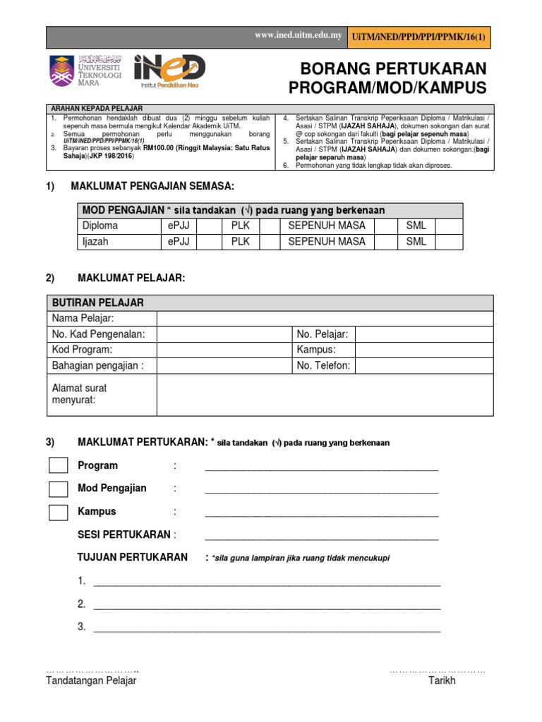 Untuk program latihan secara separuh masa, sila muat turun borang permohonan melalui pautan url yang disediakan, isi secara manual dan hantarkan senarai kursus pengajian di uitm dan lokasi kampus pelajar lepasan sijil pelajaran malaysia (spm) dan sijil tinggi pelajaran malaysia (stpm).